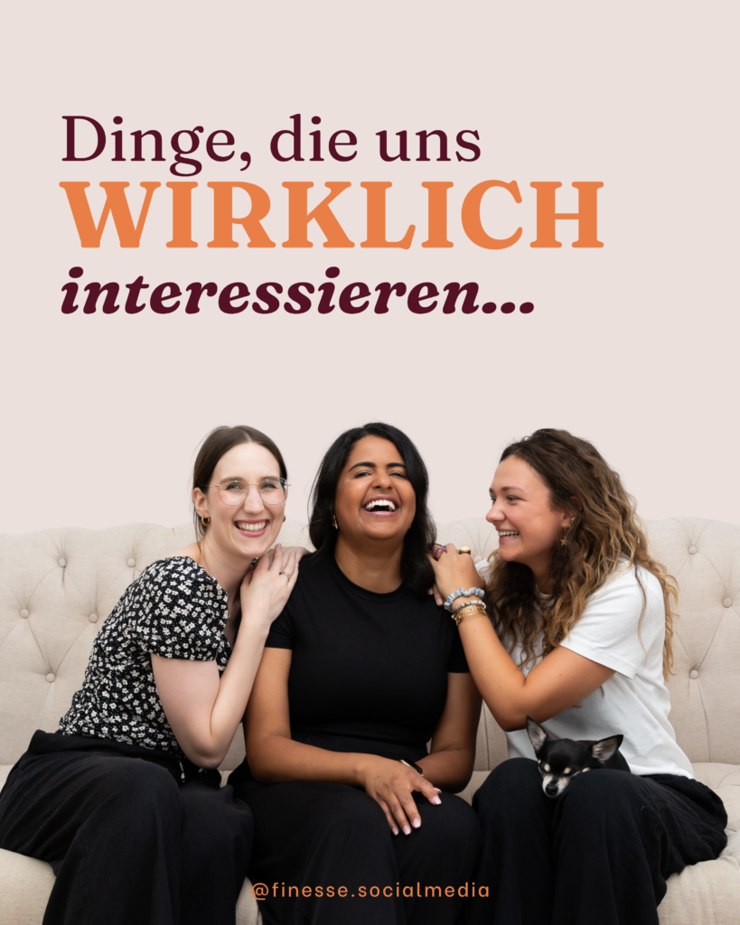 Sowohl @vegansparen als auch Finesse Social Media sind für Grace echte Herzensprojekte. Es ist ihr wichtig, ihr Social Media Wissen für Themen einzusetzen, die sinnstiftend sind und zu ihren Werten passen.